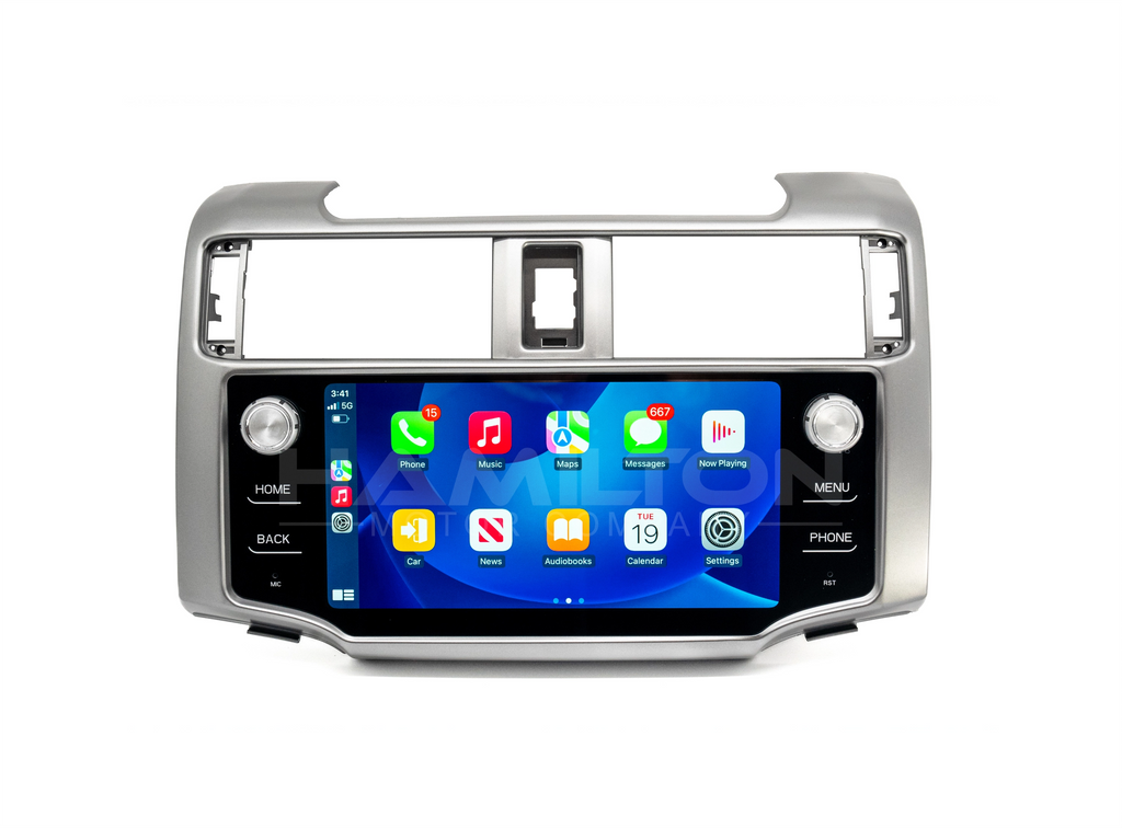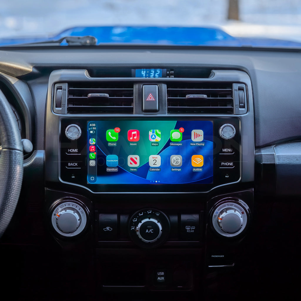 Are you tired of your Toyota 4Runner 2014-2019 outdated multimedia system? We are excited to offer the Hamilton Conversion Kit for 2014 to 2019 Toyota 4Runners to replace the outdated and frustrating infotainment system with a modern, upgraded system that has Apple CarPlay and Android Auto functionality just like the 2022+ model years. The complete 2014-2019 Toyota 4Runner Hamilton Conversion Kit for Apple CarPlay and Android Auto includes everything you need to add wireless Apple CarPlay/Android Auto functionality and will not compromise any of your factory features.